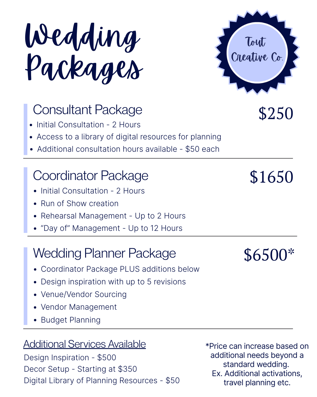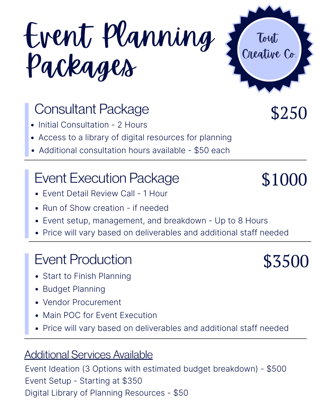 Time is precious and we’d rather spend time planning fun events than answering calls and emails about pricing.